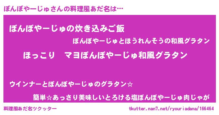 | 男性向けラノベタイトル風あだ名 | 『この素晴らしい世界にぼんぼやーじゅを!』 |
