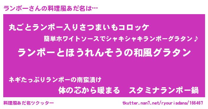 | ポケモン風あだ名 | 『ランキング』『ラーンイ』 |