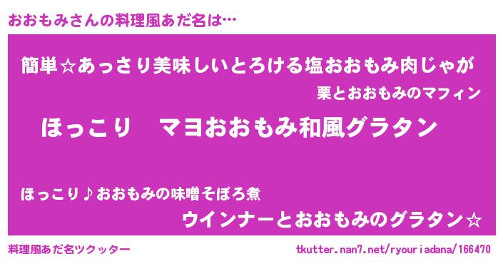 | 意味不明あだ名 | 『住所不定無職おおもみ(74歳)』 |