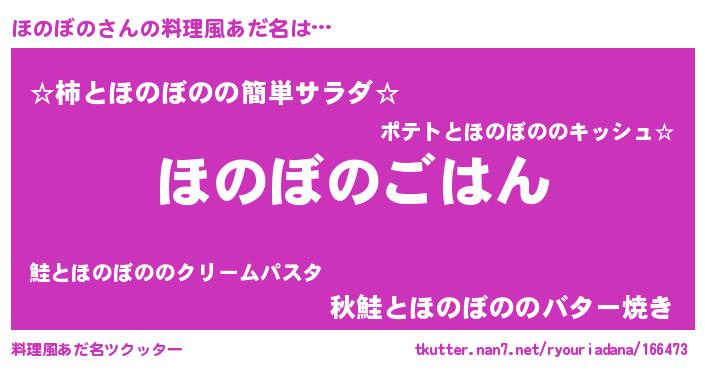 | 胡散臭い通販商品みたいなあだ名 | 『絶対に幸福をもたらす水素水…その名も「ほのぼの」』 |