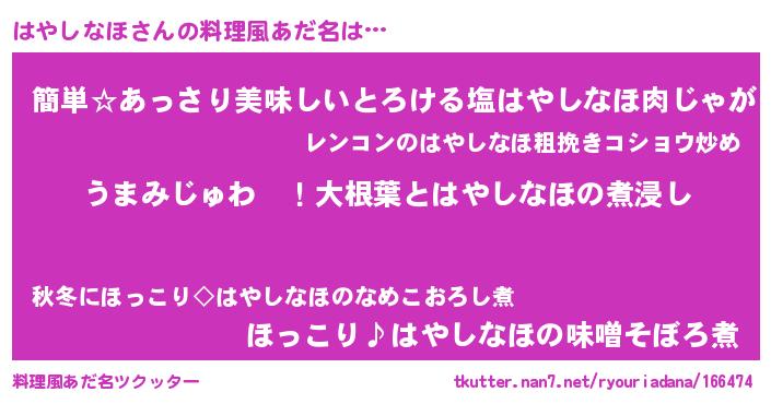 | ヘコむあだ名 | 『レバニラ』『はやしなほ(小並感)』 |