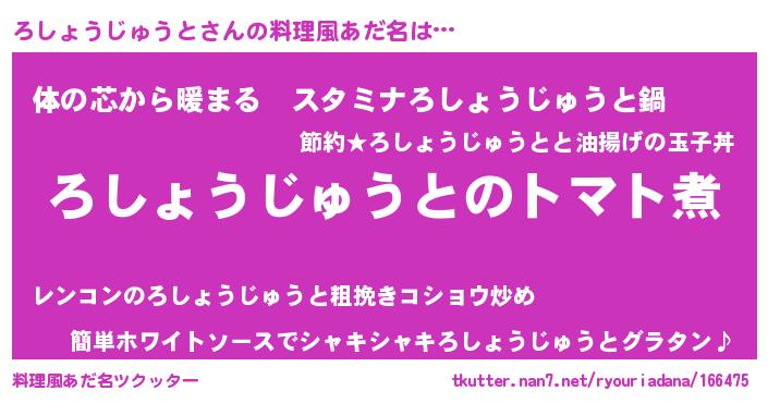 | 男性向けラノベタイトル風あだ名 | 『おまえをオタクにしてやるから、俺をろしょうじゅうとにしてくれ! 』 |
