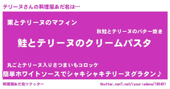 | 女子向けラノベタイトル風あだ名 | 『死神テリーヌの再婚』 |