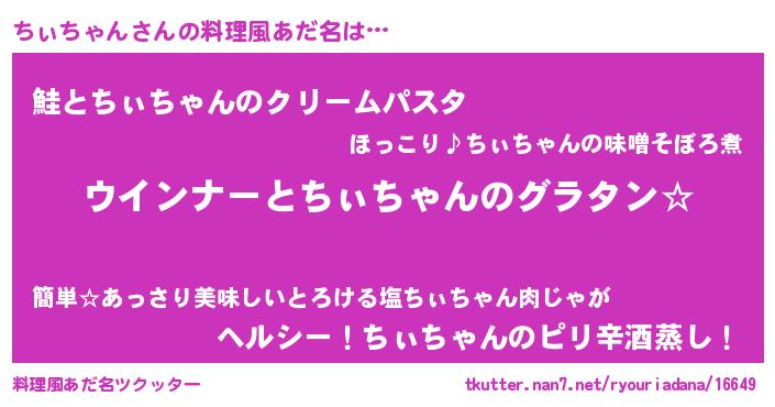 | ヘコむあだ名 | 『なまこ酢』『ちぃにー』『ちぃを』 |