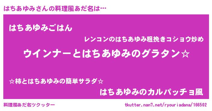 | 欧米人風あだ名 | 『はちあゆみクリステル』 |