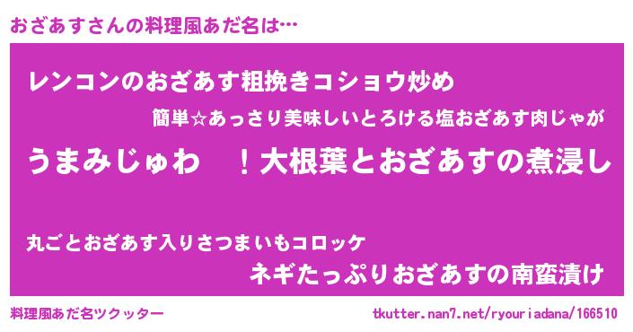 | ヘコむあだ名 | 『酢こんぶ』『おざにゅー』 |