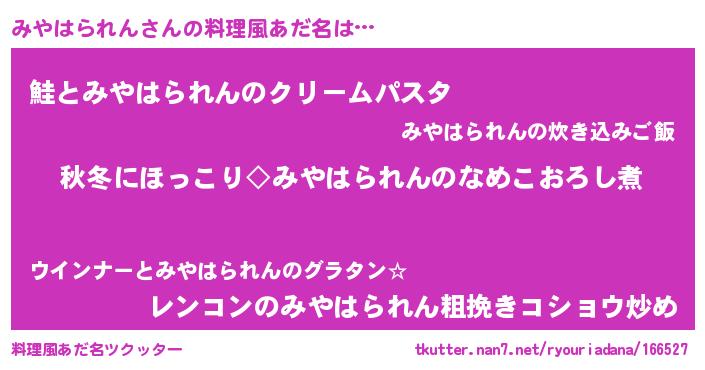 | 男性向けラノベタイトル風あだ名 | 『みやはられんに滅ぼされるだけの簡単なお仕事です』 |