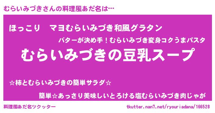 | 胡散臭い通販商品みたいなあだ名 | 『信頼と実績のサプリメント…その名も「むらいみづき」』 |