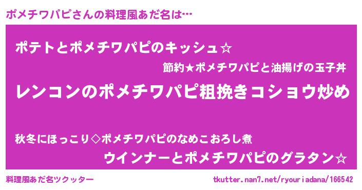 | 意味不明あだ名 | 『自称ポメチワパピ』 |