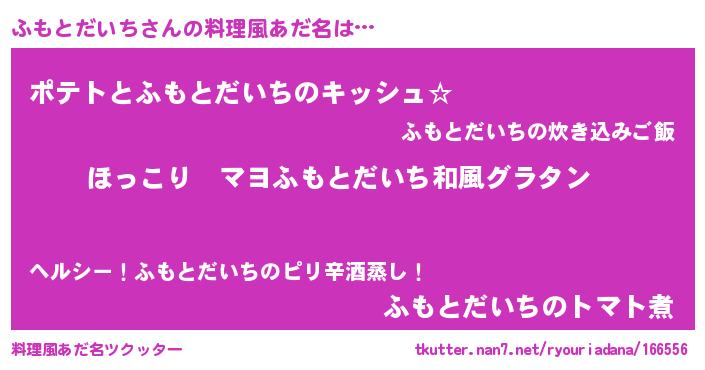 | ヘコむあだ名 | 『ふもを』『なまこ酢』『ふももー』 |