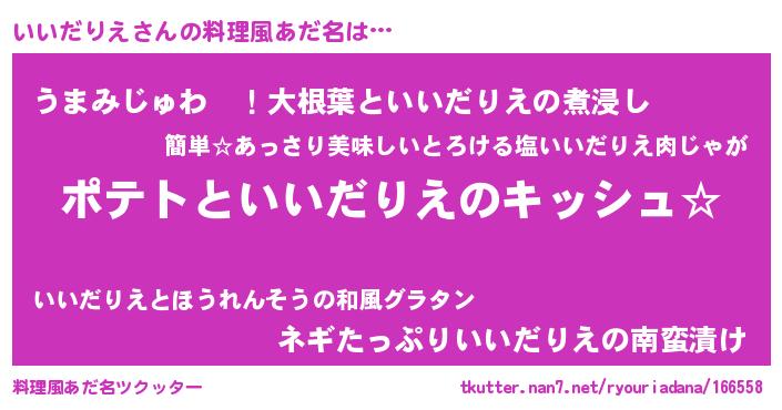 | ヒーロー風カッコイイあだ名 | 『銀牙騎士イイ』『スーパーイイダリエ』 |