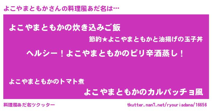 | 男性向けラノベタイトル風あだ名 | 『Re:よこやまともかから始める異世界生活』 |