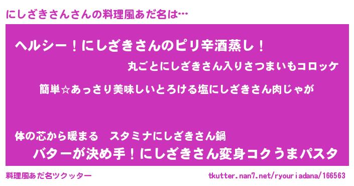 | ヘコむあだ名 | 『にしざきさん(爆)』『なまこ酢』 |