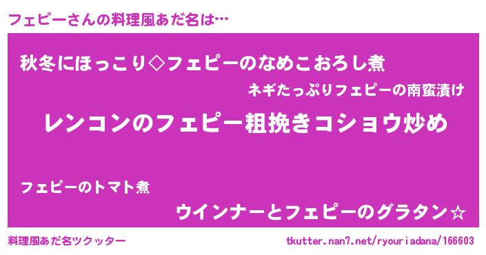| 女子向けラノベタイトル風あだ名 | 『フェピーなんてお断りですっ。』 |