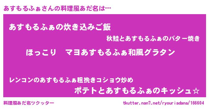 | ヘコむあだ名 | 『あすっ子』『あすもるふぁ(爆)』 |