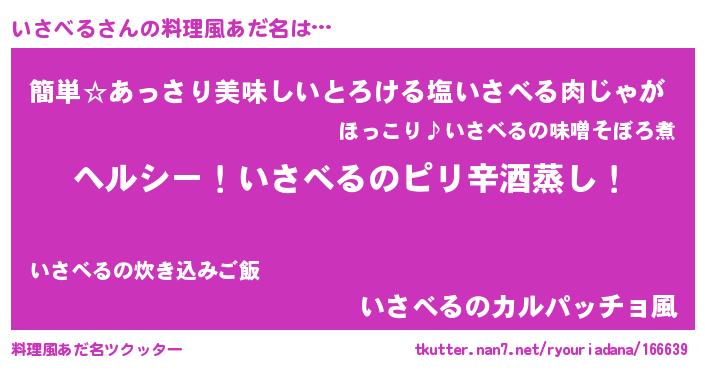 | 意味不明あだ名 | 『自称いさべる』『永久保存いさべる』 |