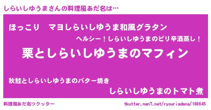 | ヘコむあだ名 | 『しらいしゆうま(遠い目)』『しらお』 |