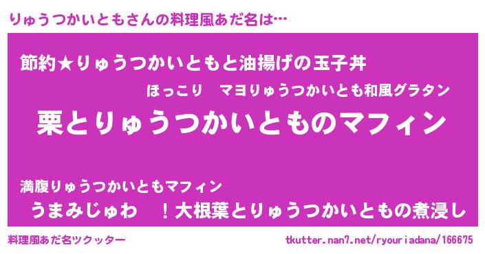 | ヘコむあだ名 | 『りゅふぇ~』『なまこ酢』『りゅを』 |