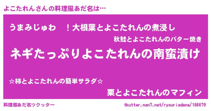 | 胡散臭い通販商品みたいなあだ名 | 『億万長者になれる水晶球…その名も「よこたれん」』 |