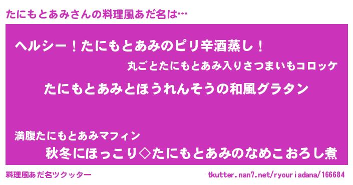 | ヒーロー風カッコイイあだ名 | 『最強戦士タニモトアミ』『仮面タニダー』 |