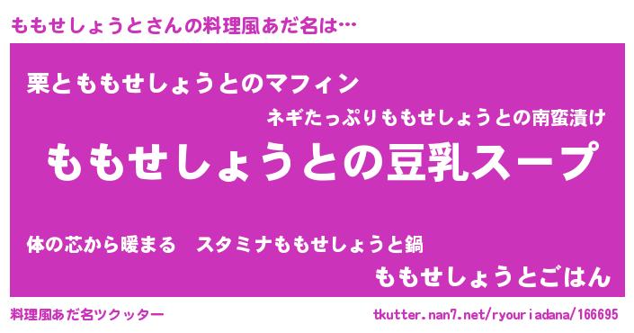 | ポケモン風あだ名 | 『ヒモモセショウト』『モモゴンZ』 |