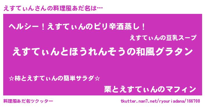 | 女子向けラノベタイトル風あだ名 | 『えすてぃんの玉の輿計画!』 |