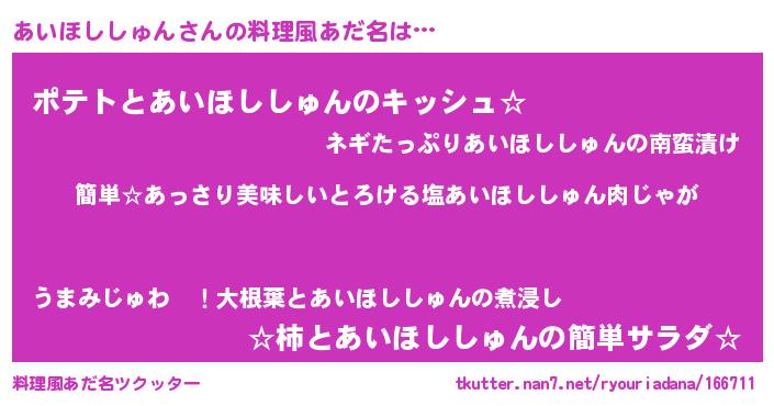 | ヒーロー風カッコイイあだ名 | 『ネオアイホシシュン』『魔戒騎士アイ』 |