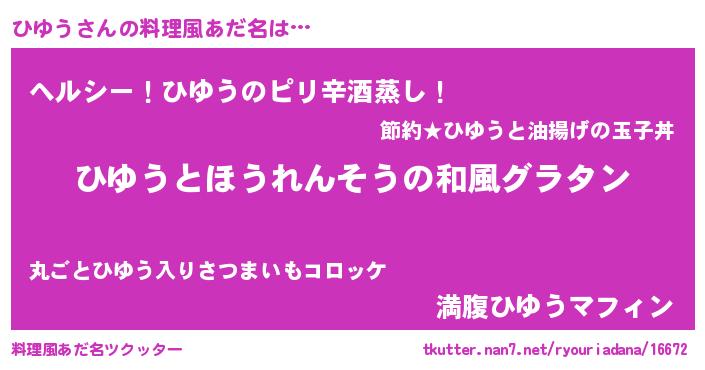 | 女子向けラノベタイトル風あだ名 | 『ひゆうの玉の輿計画!』『闇のひゆう』 |