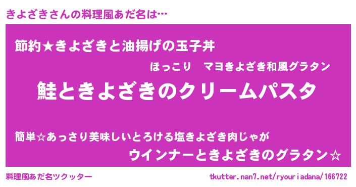 | ヘコむあだ名 | 『きよもー』『なまこ酢』『きよを』 |