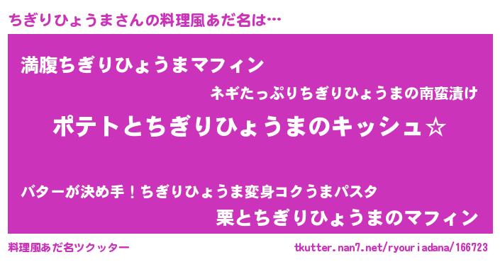 | 男性向けラノベタイトル風あだ名 | 『ちぎりひょうまの嫁は女の子じゃないと思った?』 |