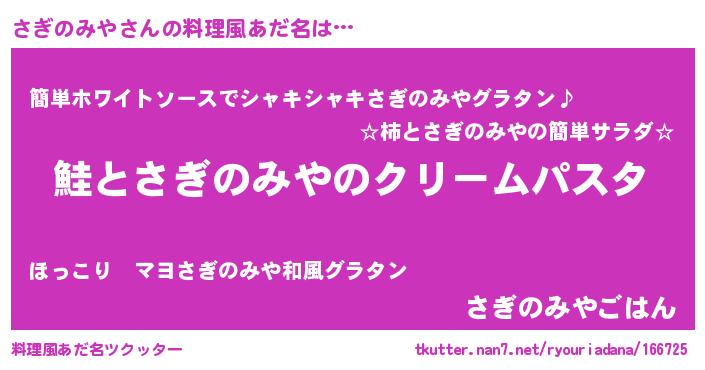 | ヒーロー風カッコイイあだ名 | 『天空の使者さぎのみや』『暗黒騎士サギ』 |