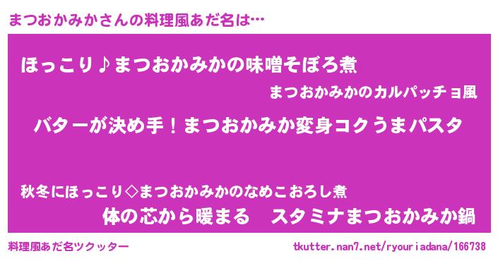| 女子向けラノベタイトル風あだ名 | 『まつおかみか恋絵巻』 |