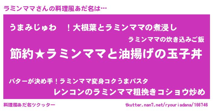 | ヒーロー風カッコイイあだ名 | 『スーパーラミンママ』『黄金騎士ラミ』 |