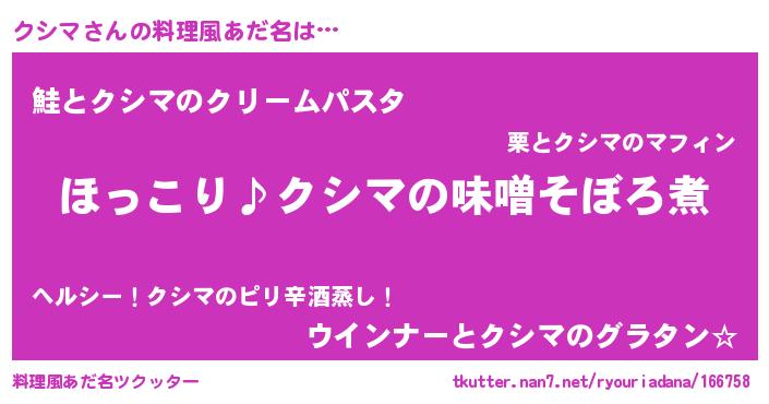| 男性向けラノベタイトル風あだ名 | 『クシマの憂鬱』『はたらくクシマさま!』 |