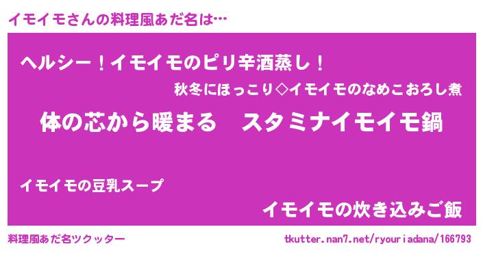 | ファンタジー風あだ名 | 『エターナルイモイモー』『ゼイモトゥ』 |