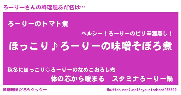 | 意味不明あだ名 | 『ペロリンろーりー』『自称ろーりー』 |