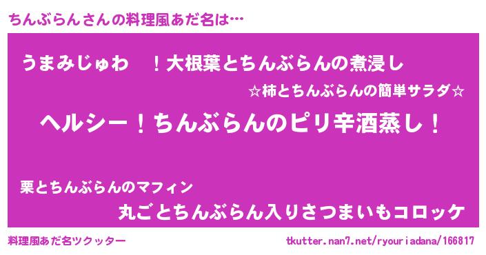 | 意味不明あだ名 | 『自称ちんぶらん』 |