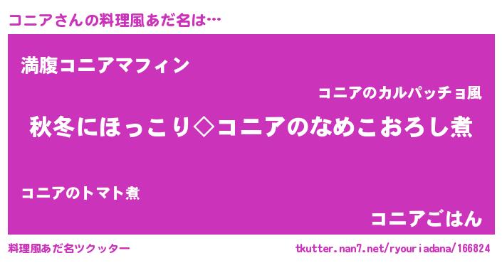 | ヘコむあだ名 | 『コニア(笑)』『コニふぇ~』『牛乳』 |