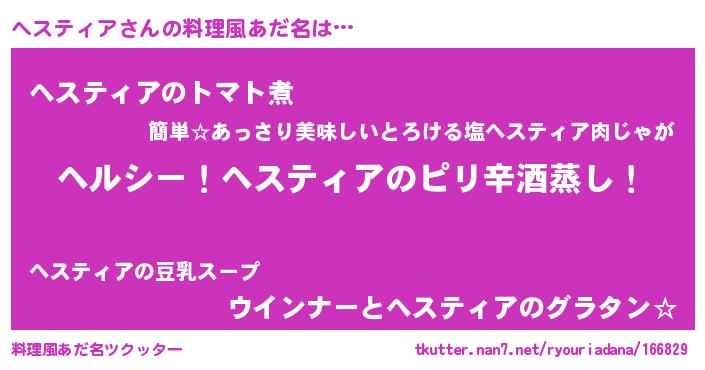 | ヘコむあだ名 | 『なまこ酢』『ヘスティア(小並感)』 |