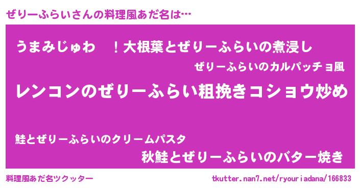 | 女子向けラノベタイトル風あだ名 | 『ぜりーふらいなんてお断りですっ。』 |