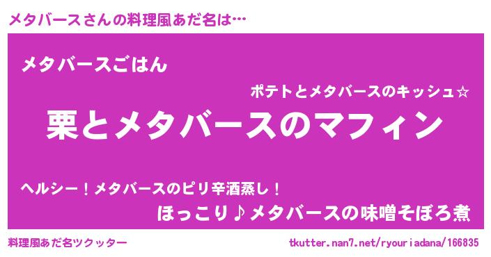 | 胡散臭い通販商品みたいなあだ名 | 『必ず成功する水晶球…その名も「メタバース」』 |