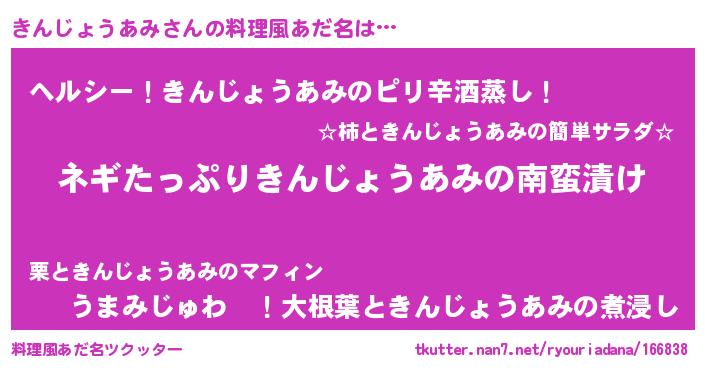 | 男性向けラノベタイトル風あだ名 | 『キンジョウアミアートオンライン』 |