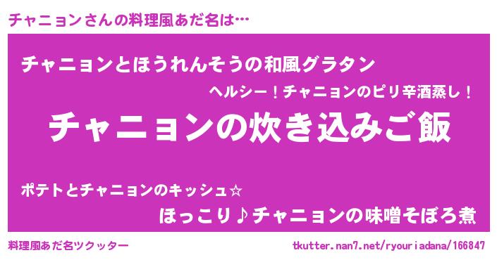 | 胡散臭い通販商品みたいなあだ名 | 『モテモテ間違いなし水晶球…その名も「チャニョン」』 |