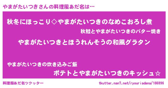 | 胡散臭い通販商品みたいなあだ名 | 『伝統あるサプリメント…その名も「やまがたいつき」』 |