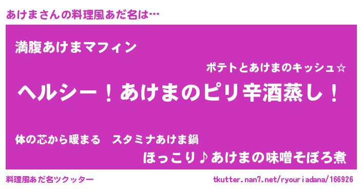 | 意味不明あだ名 | 『自称あけま』『永久保存あけま』 |