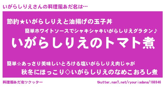 | 胡散臭い通販商品みたいなあだ名 | 『100人中100人が認めたマグネット磁石…その名も「いがらしりえ」』 |