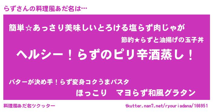 | 意味不明あだ名 | 『自称らず』『永久保存らず』 |
