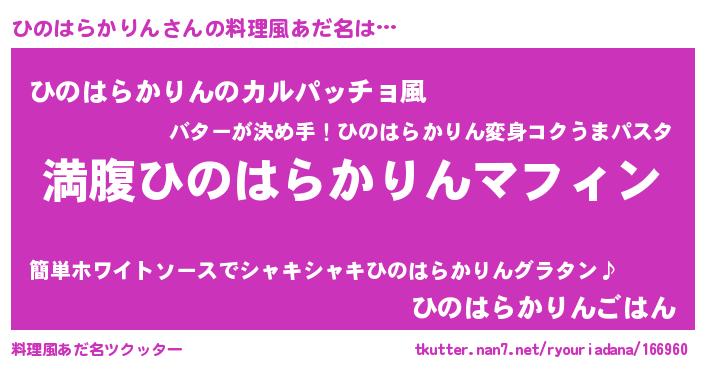 | ヘコむあだ名 | 『ひのはらかりん(小並感)』『ひのぷりん』 |