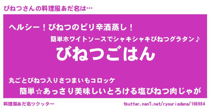 | ヘコむあだ名 | 『びねつ(爆)』『びねっちょ』 |