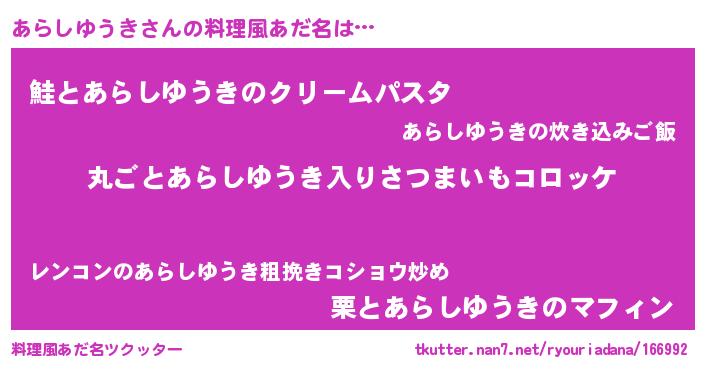 | ヘコむあだ名 | 『あら太郎』『あらしゆうき(笑)』 |